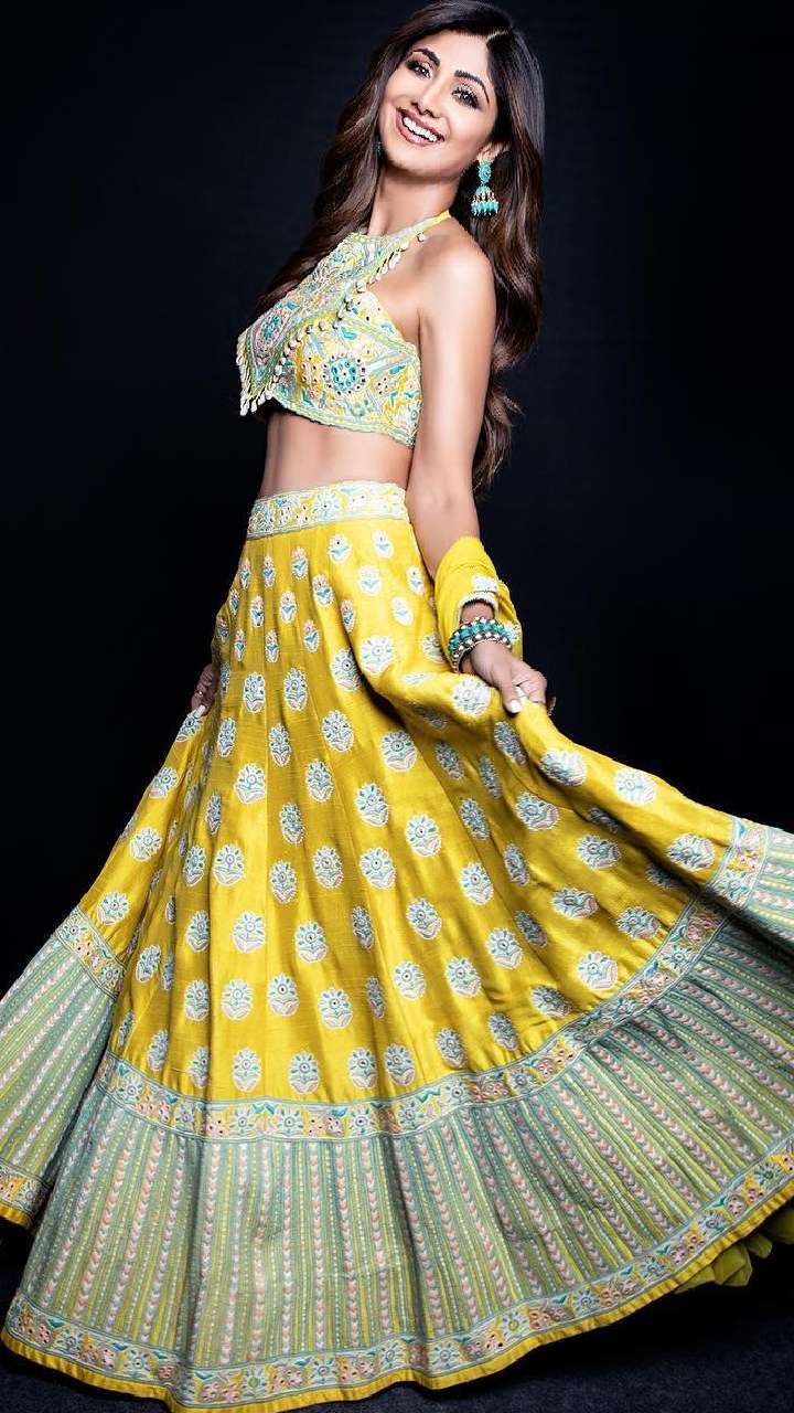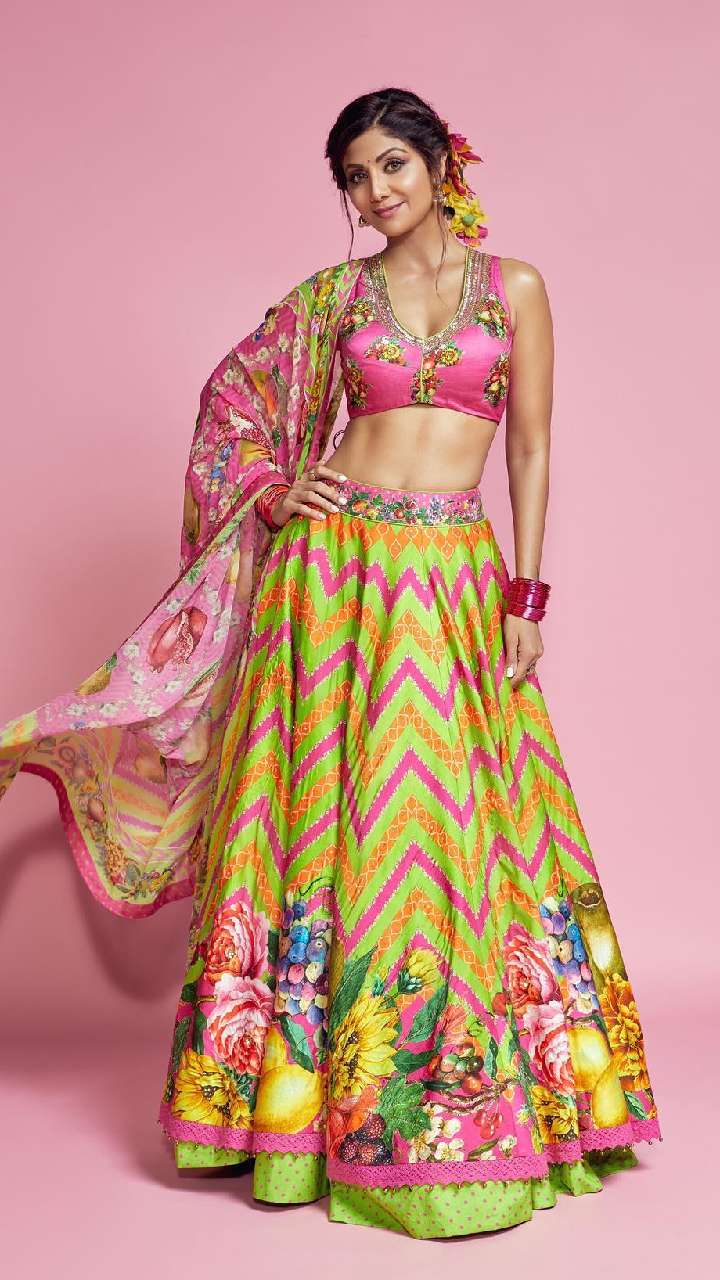 आप यदि एकदम सिंपल और अट्रैक्टिव दिखने का सोच रही हैं तो शिल्पा की तरह फैब्रिक लेकर ऐसा लहंगा स्टीच करा सकती हैं।