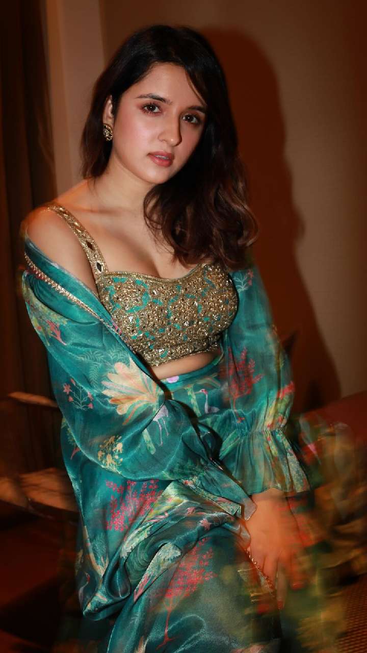 ब्लू और गोल्डन कलर के इंडो वेस्टर्न ड्रेस में शर्ली सेतिया बेहद खूबसूरत दिख रहीं हैं। शर्ली का ये लुक काफी शानदार है।