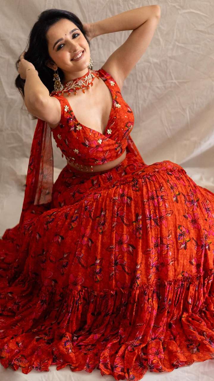 शर्ली सेतिया के पास हर आउटफिट का शानदार कलेक्शन है। इस लहंगे में भी सिंगर बहुत खूबसूरत लग रहीं हैं।