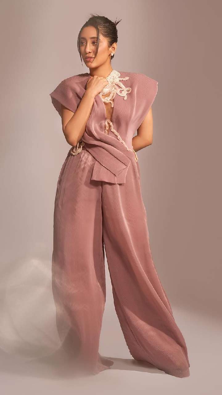 पिंक प्लाजो और टॉप में एक्ट्रेस कमाल की लग रही हैं। आप राखी और पर खूबसूरत दिखने के साथ-साथ सिंपल लुक कैरी करना चाहती हैं, तो यह आउटफिट आपके लिए बेस्ट हैं।