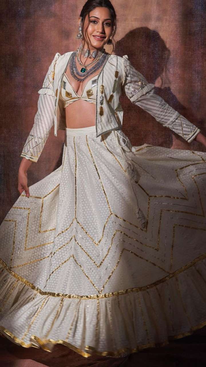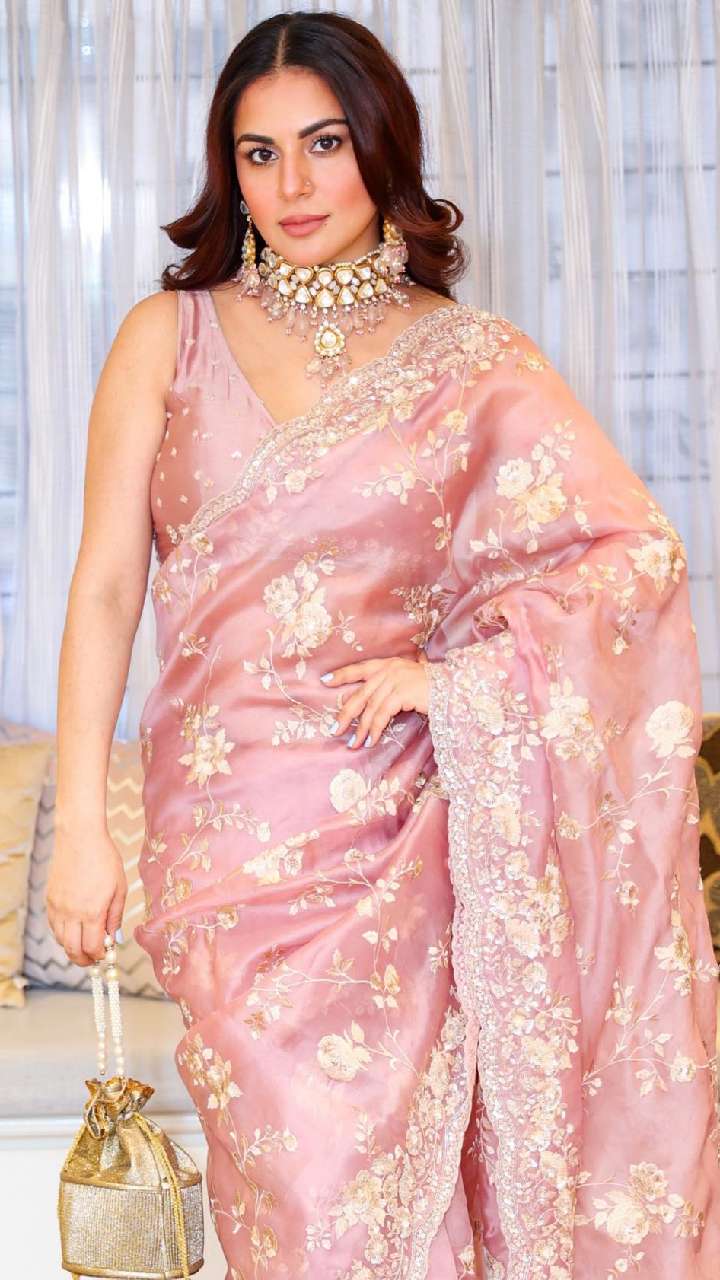 टीवी एक्ट्रेस की इस लाइट पिंक कलर की साड़ी को आप वियर करके शादी में हॉट लग सकती हैं। इस साड़ी का खूबसूरत सिल्वर वर्क आपको पूरी शादी में स्पॉटलाइट बनाने का काम करेगा।