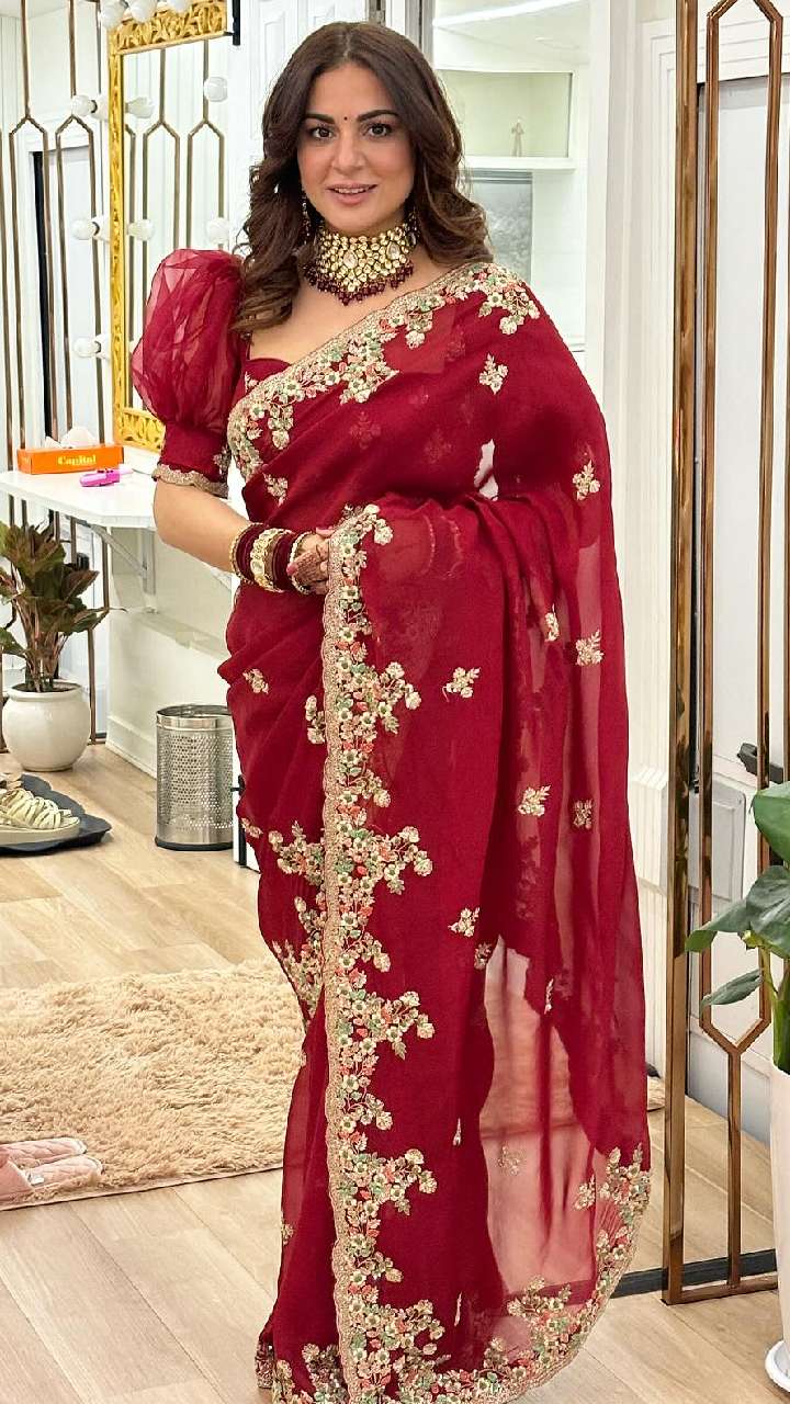 अगर आप शादी शुदा है तो यह रेड कलर की फ्लोरल पैटर्न वाली साड़ी आपके लिए एकदम परफेक्ट है।
