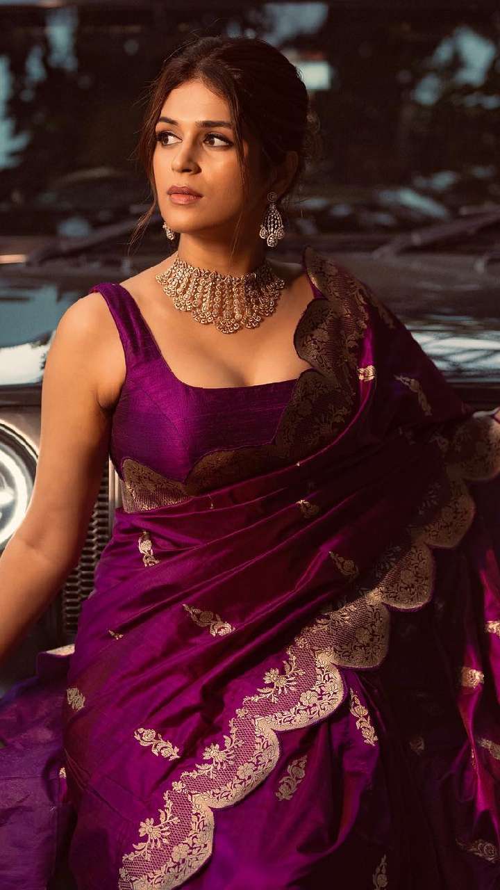 श्रद्धा ने पर्पल कलर की सिल्क साड़ी के साथ स्क्वेयर नेक ब्लाउज से खुद को रॉयल लुक दिया है।