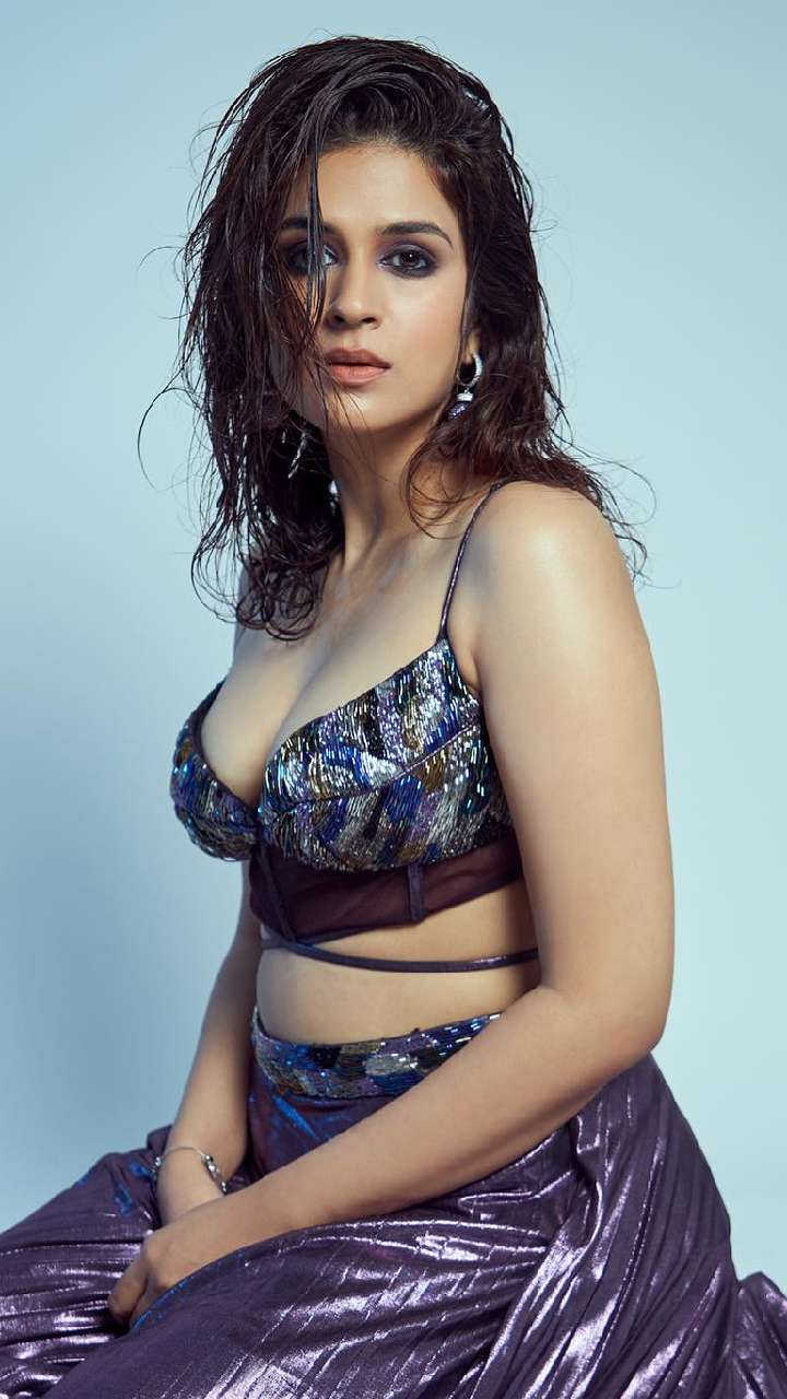 एक्ट्रेस ने शिमरी लहंगे के साथ ये स्ट्रैपी चोली स्वीट हार्ट नेक ब्लाउज डिजाइन से खुद को बोल्ड लुक दिया है।