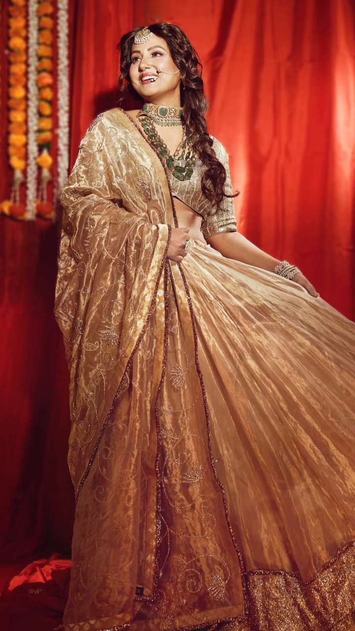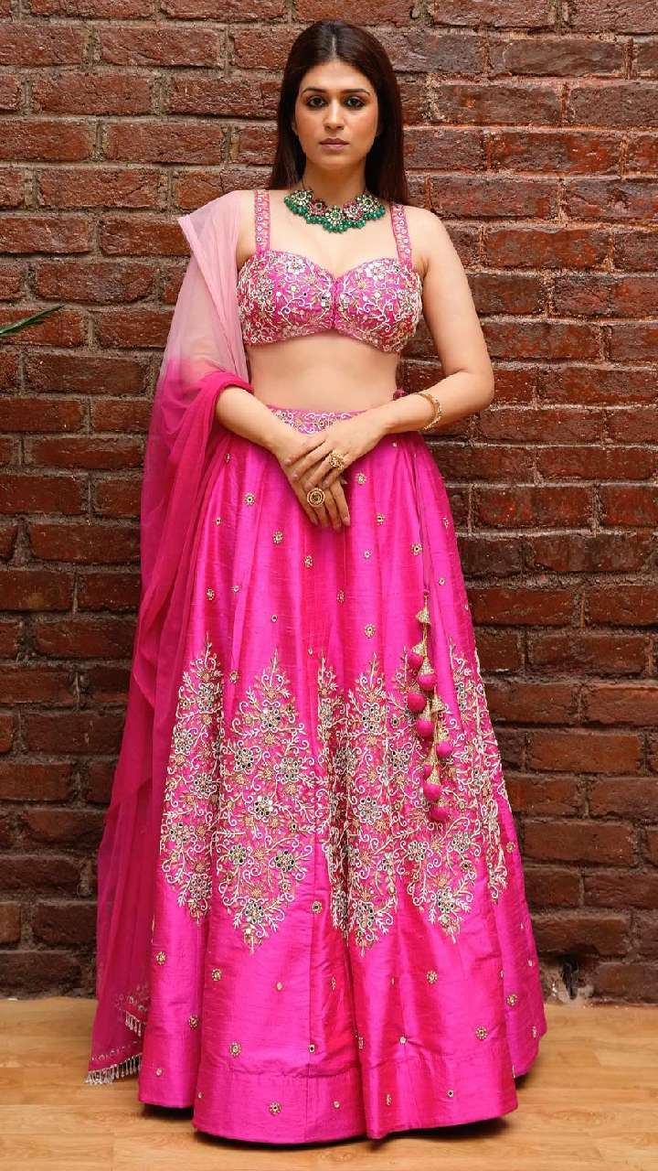 अगर आप रिसेप्शन पार्टी के लिए लहंगा की तलाश में हैं, तो इस तरह के एंब्रॉयडरी वर्क लहंगा से आइडिया ले सकती हैं। इसके साथ मैचिंग ज्वेलरी आपके लुक में चार चांद लगा देंगी।