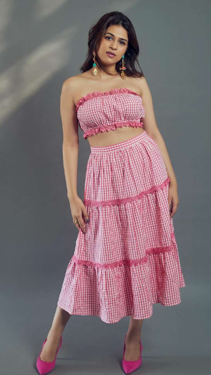 श्रद्धा दास पिंक कलर के टैक टॉप और स्कर्ट में ब्यूटीफुल लग रही हैं। इस तरह की ड्रेस यंग गर्ल्स को पार्टी परफेक्ट बनाती हैं।