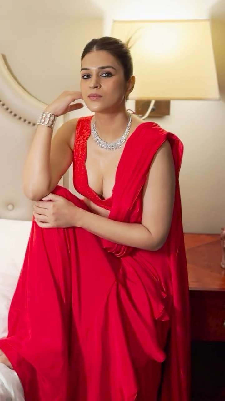 रेड कलर की साड़ी के साथ श्रद्धा दास ने डायमंड नेकलेस डिजाइन पेयर किया है। आप भी इस तरह के नेकलेस को कैरी कर सकती हैं।