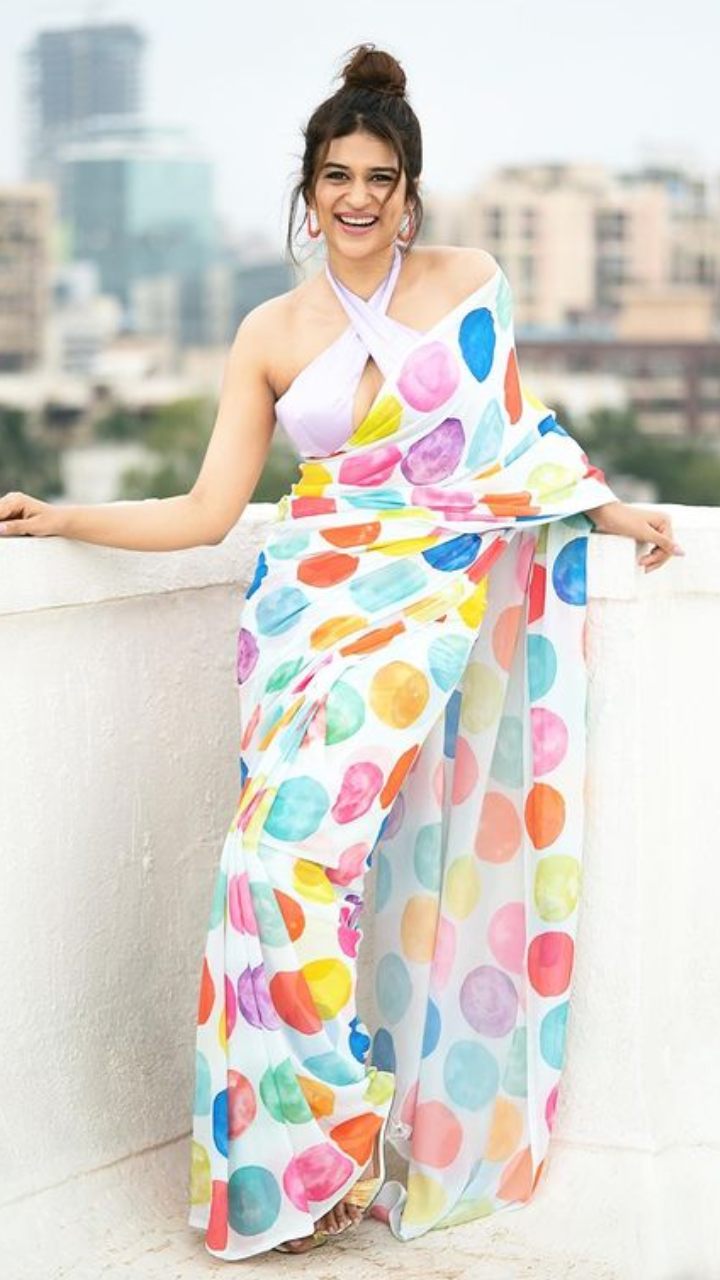 एक्ट्रेस का हॉल्डर नेक वाला ब्लाउज लोगों को काफी अट्रैक्टिव लग रहा है।