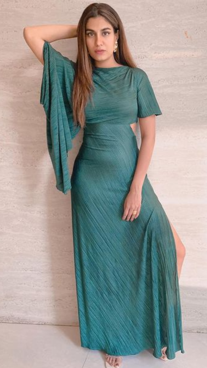श्रेया श्रेया धन्वंतरि ग्रीन शेड ड्रेस में बेहद ग्लैमरस दिख रही हैं।