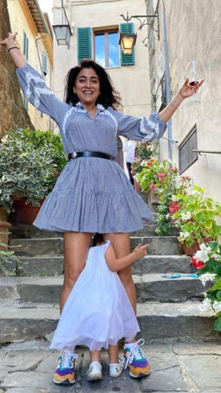 इस फोटो में आप श्रिया सरन और उनकी बेटी का मस्ती भरा अंदाज़ देख सकते हैं।