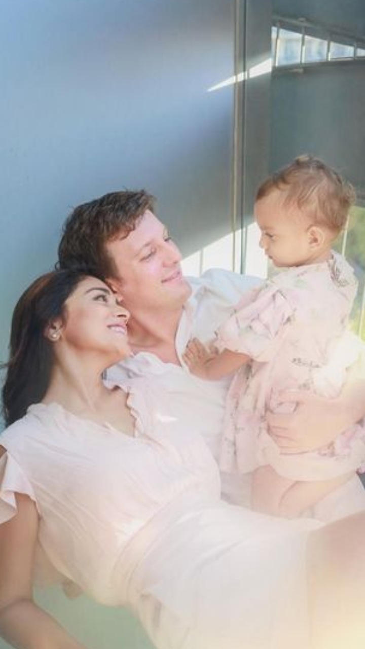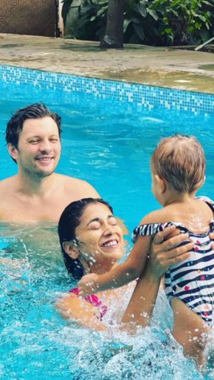 इस फोटो में श्रिया अपने पति और बेटी संग पूल में मस्ती करती नजर आ रही हैं।