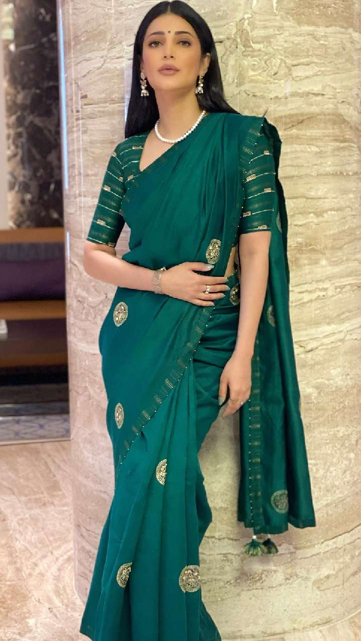 श्रुति हासन सोशल मीडिया पर काफी ज्यादा एक्टिव रहती हैं और अक्सर अपनी फोटोज शेयर करती रहती हैं। हाल ही में एक्ट्रेस ने शानदार साड़ी में फोटोज शेयर की थी।