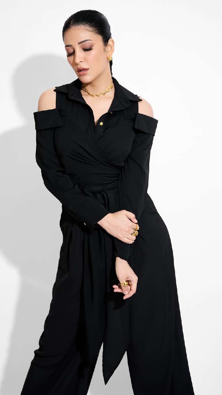 Shruti का यह लुक बेहद अट्रैक्टिव लग रहा है। साथ ही, एक्ट्रेस का मेकअप उनकी पर्सनैलिटी को बोल्ड और बॉसी लुक दे रहा है।