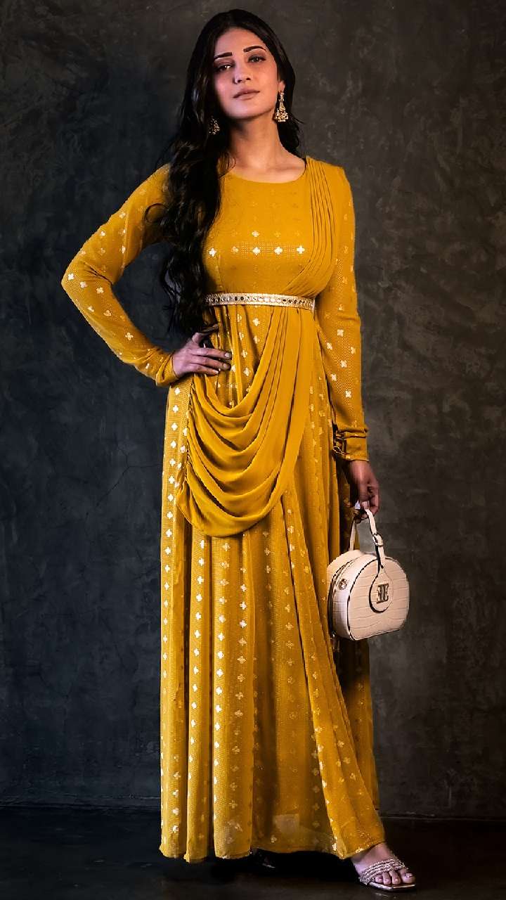 सोशल मीडिया पर श्रुति हासन ने अपना लेटेस्ट लुक शेयर किया है। मस्टर्ड येलो कलर की इस ड्रेस में एक्ट्रेस प्यारी लग रहीं हैं।
