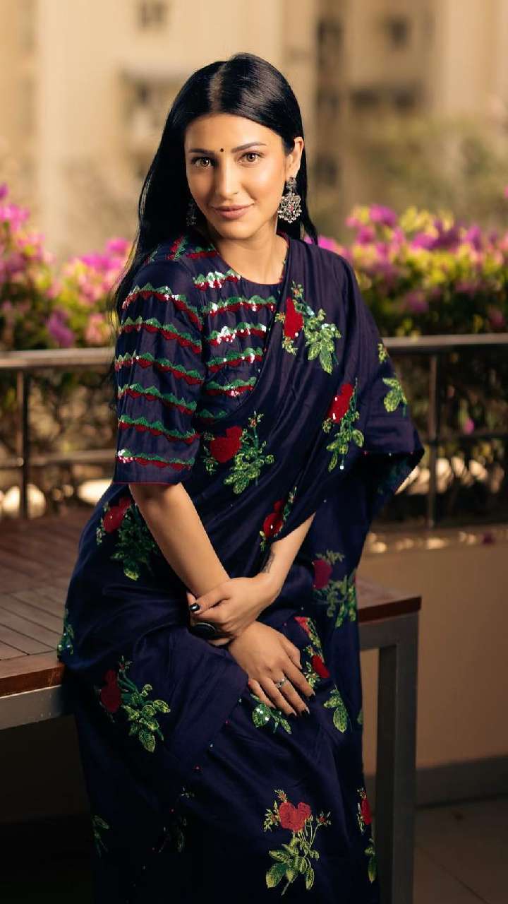 इस साड़ी में भी श्रुति हासन बहुत ज्यादा खूबसूरत लग रहीं हैं। आप भी एक्ट्रेस के ये शानदार लुक्स कैरी कर सकती हैं।