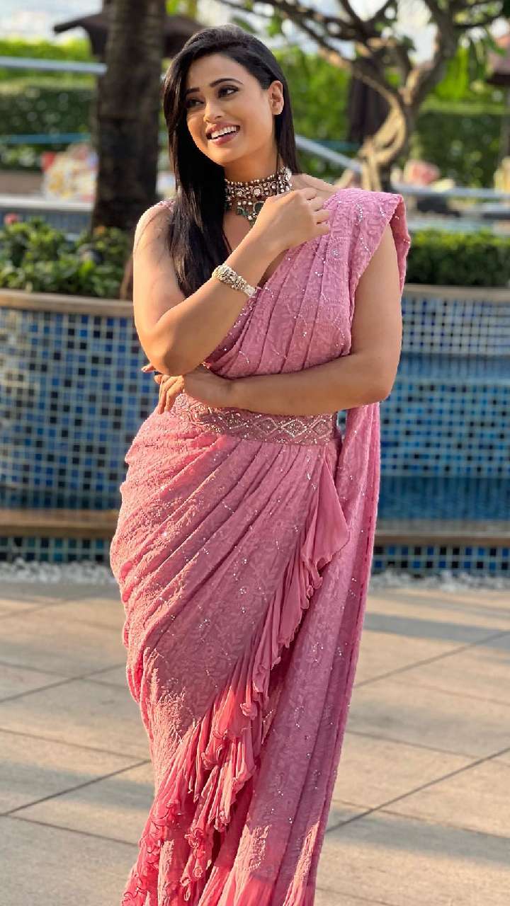 संगीत पार्टी में इस तरह की रफल साड़ियां भी अट्रैक्टिव लगती हैं। एक्ट्रेस ने रफल साड़ी विद बेल्ट हैवी नेकपीस से अपना लुक कंप्लीट किया है।
