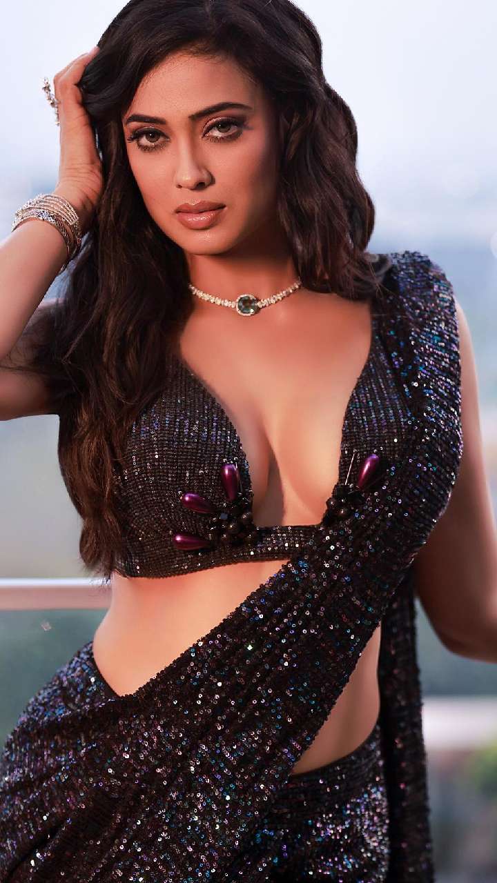 अभिनेत्री का सेक्विन साड़ी के संग कट स्लीव्स बैक में क्रिस क्रॉस डोरी ब्लाउज डिजाइन काफी सेसी लुक दे रहा है।