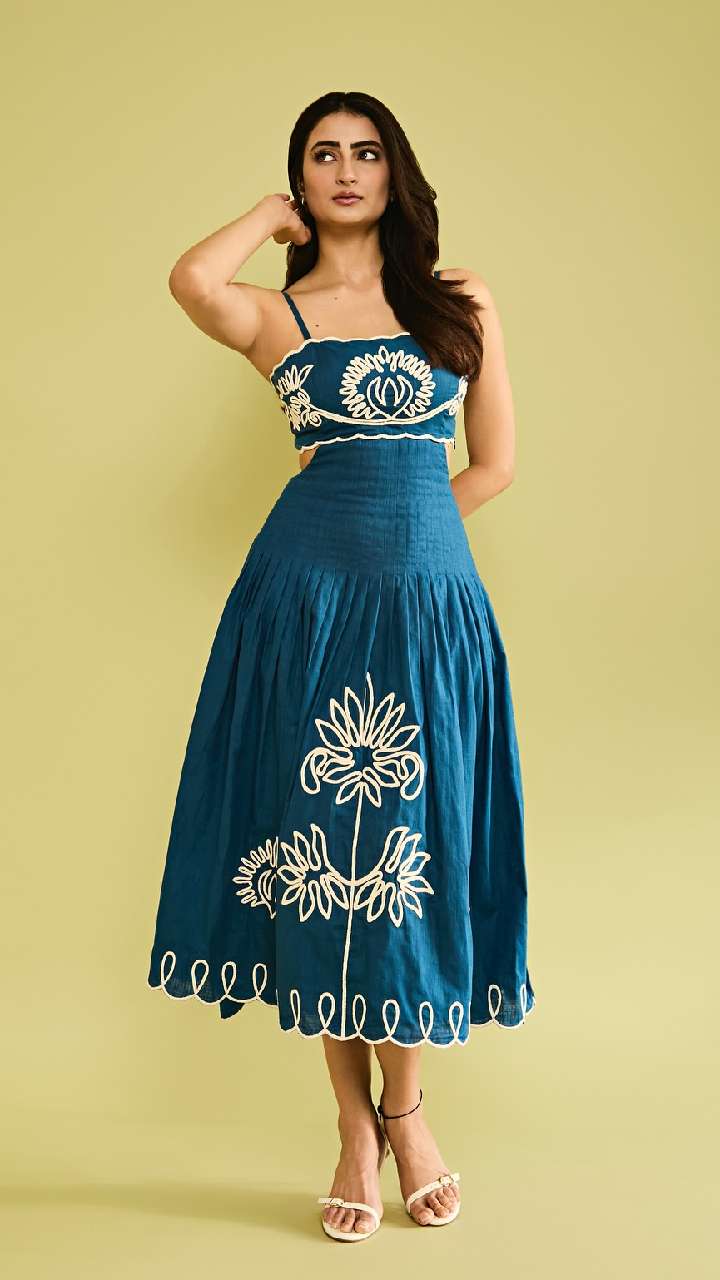 श्वेता तिवारी की लाडली ब्लू कलर की मिडी ड्रेस में सेसी दिखाई दे रही हैं। आप भी ऐसी ड्रेस पहनकर महफिल की जान बन सकती हैं।