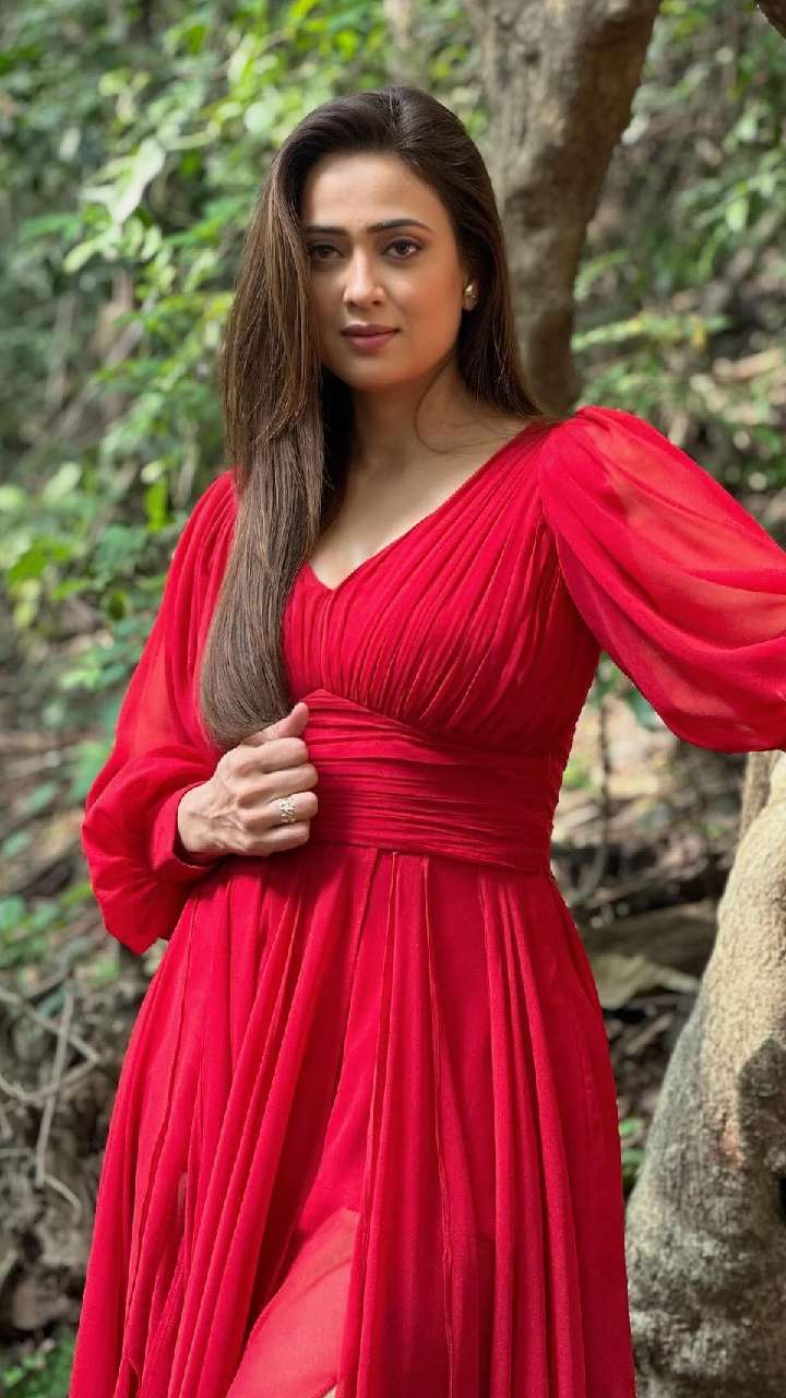 श्वेता की रेड शिफॉन फैब्रिक पफ स्लीव्स ड्रेस डे पार्टी के लिए परफेक्ट है। आप इस ड्रेस में एकदम हुस्न परी नजर आएंगी।