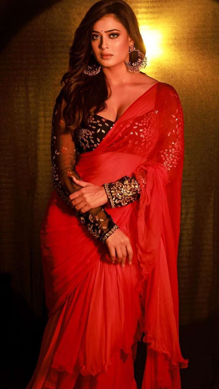 तीज या फिर किसी भी धार्मिक त्योहार पर लाल साड़ी पहनना शुभ माना जाता है। एक्ट्रेस का ये रेड साड़ी लुक भी शानदार है।