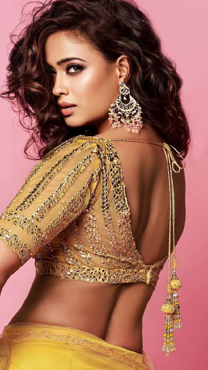श्वेता इस येलो कलर के मिरर वर्क टसल ब्लाउज में बेहद बोल्ड लग रही हैं। आप भी इस लुक से आइडिया ले सकती हैं।