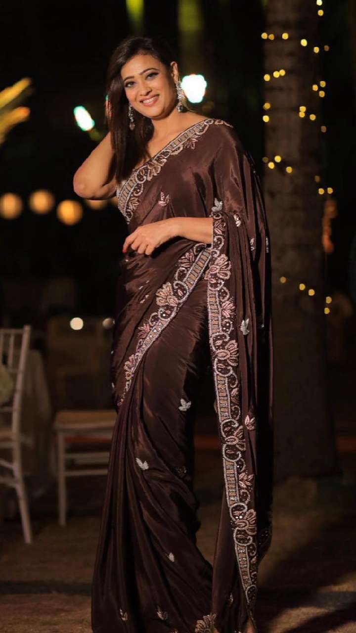 श्वेता ने इस सेक्विन साड़ी के साथ बैकलेस क्रिस क्रॉस डोरी वाला बोल्ड ब्लाउज लुक कैरी किया है।