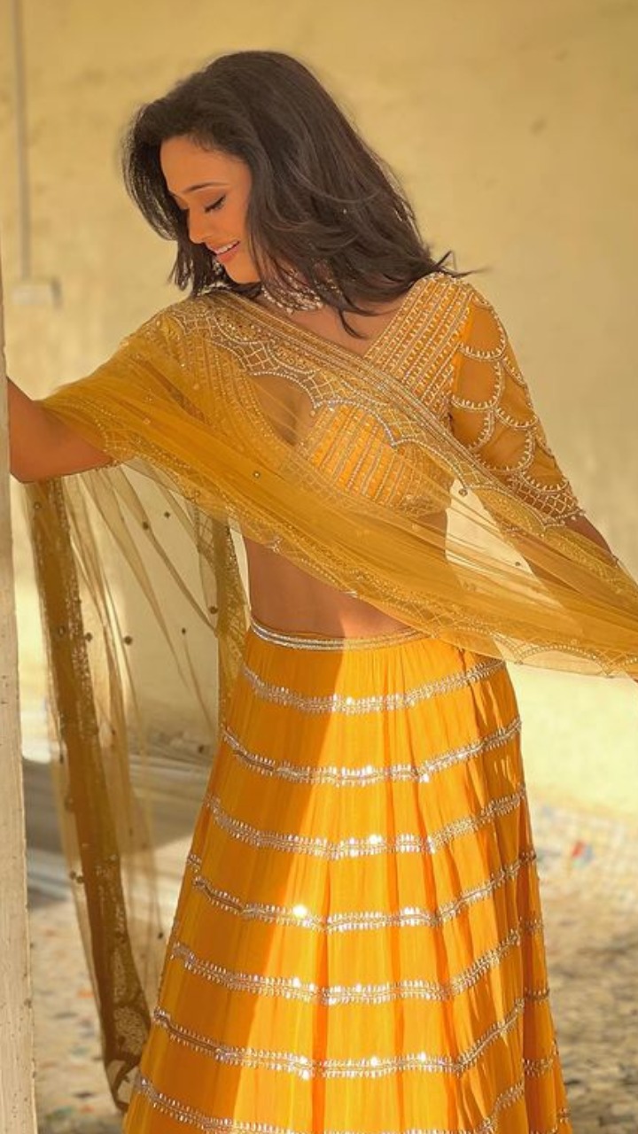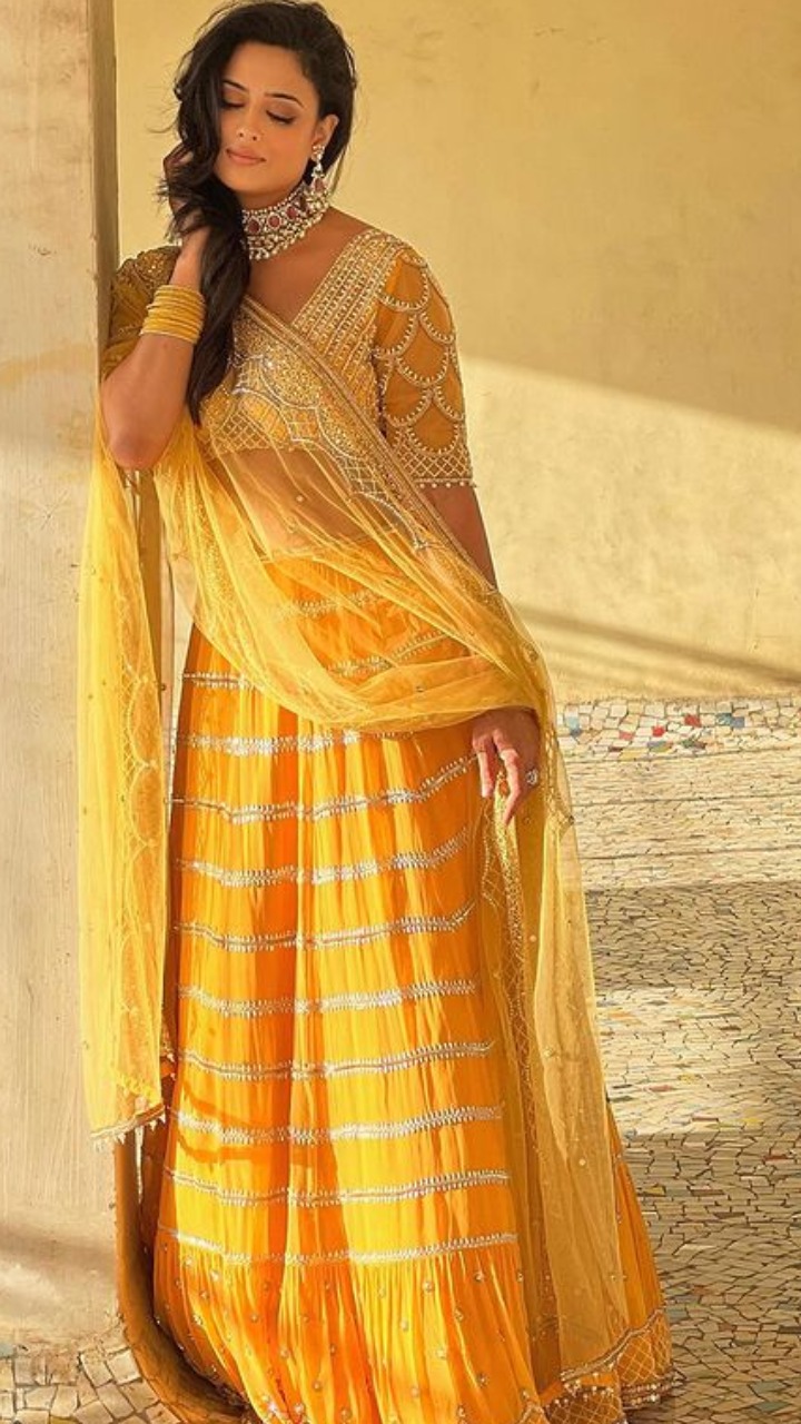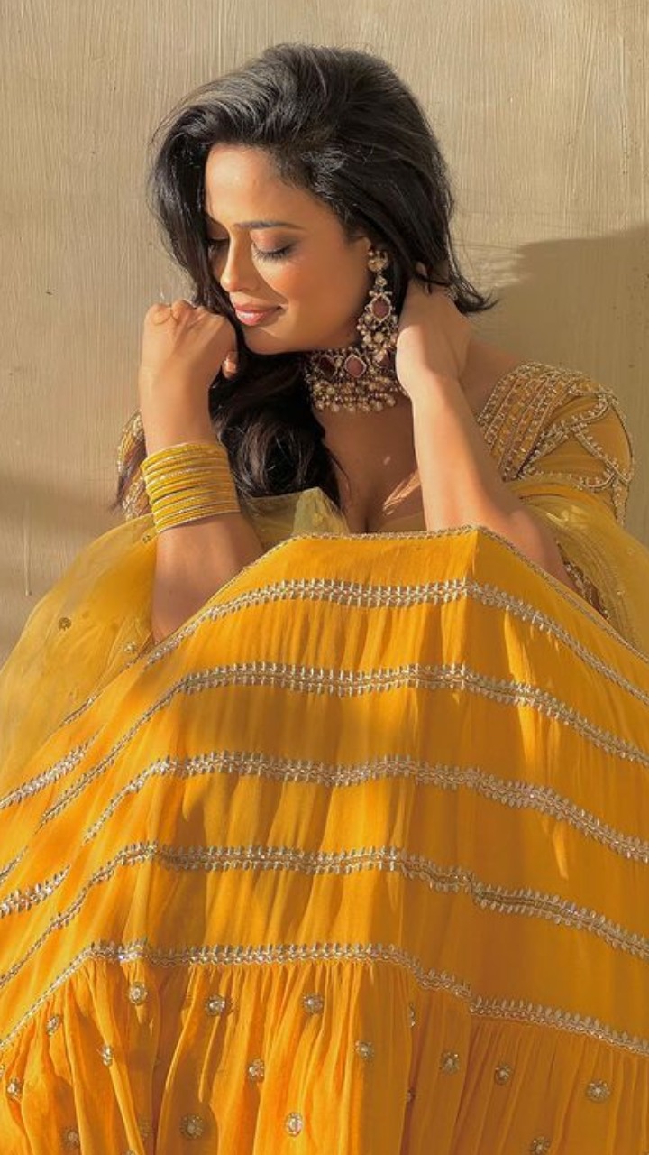 श्वेता तिवारी इस येलो लहंगे में बेहद गॉर्जियस लुक दिख रही हैं।