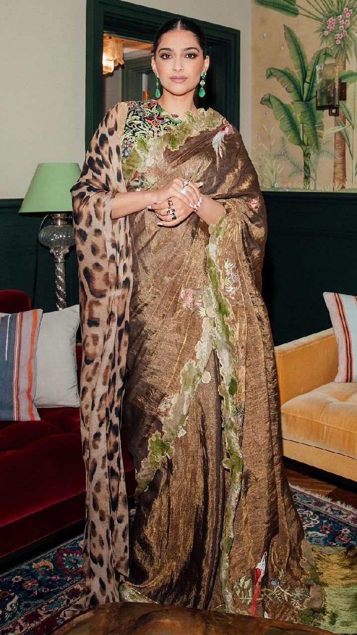 विंटर वेडिंग के लिए आप सोनम कपूर के इस लुक से आइडिया ले सकती हैं। उन्होंने अपनी सिल्क साड़ी के साथ वुलन एनिमल प्रिंट स्टोल कैरी किया है, जिसमें वह काफी स्टाइलिश भी नजर आ रही हैं।