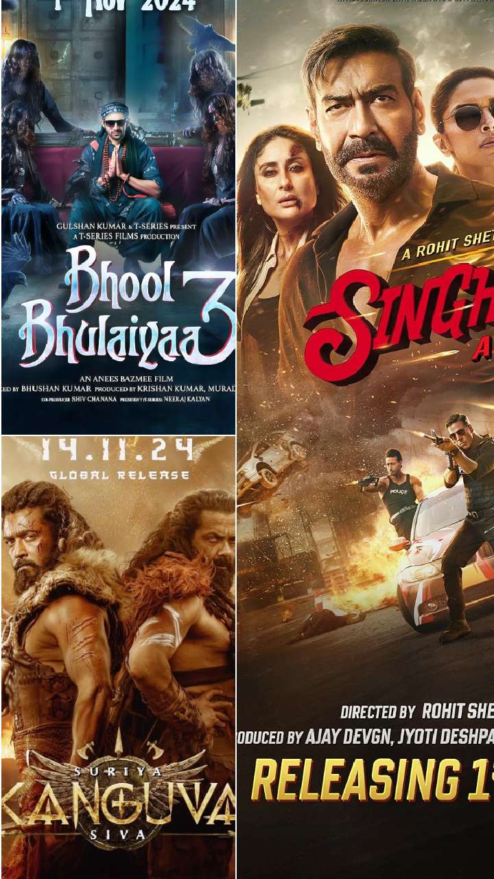 इस लिस्ट में पहला नाम अजय देवगन की सीक्वल फिल्म 'सिंघम अगेन' का है। रोहित शेट्टी की इन फिल्म 1 नवंबर को दिवाली पर रिलीज होगी।