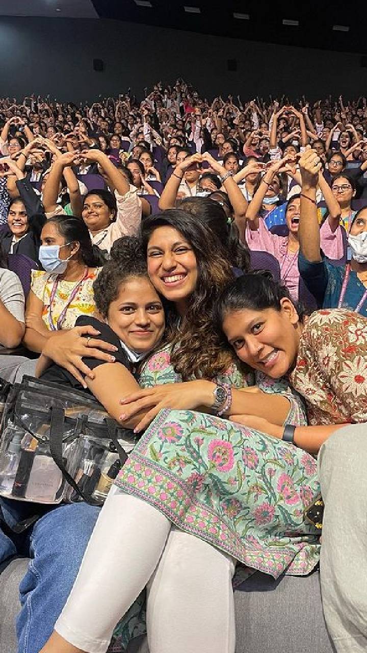 मृणाल ठाकुर को इस तस्वीर में फैंस के साथ मस्ती करती देखी जा सकती हैं।