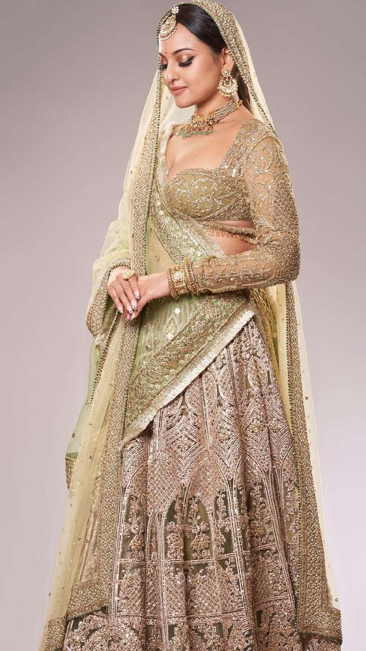 हैवी बाजू पर आप लहंगे संग इस तरह से कोल्ड शोल्डर चोली भी शानदार लुक देती हैं।