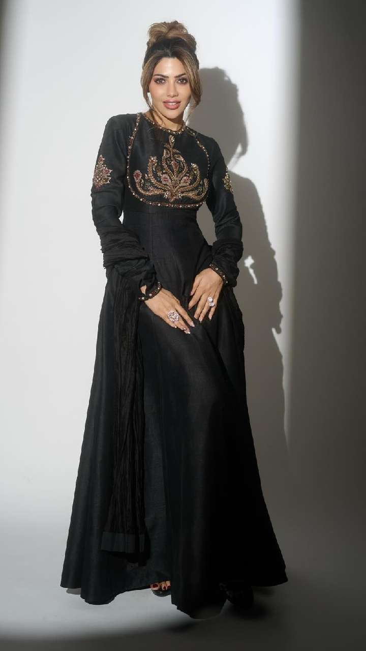 एक्ट्रेस इस ब्लैक कलर के हैवी एंब्रॉयडरी सूट में कमाल की लग रही हैं। आप शादी में मॉडल और संस्कारी दिखने के लिए इस सूट को ट्राई कर सकती हैं।