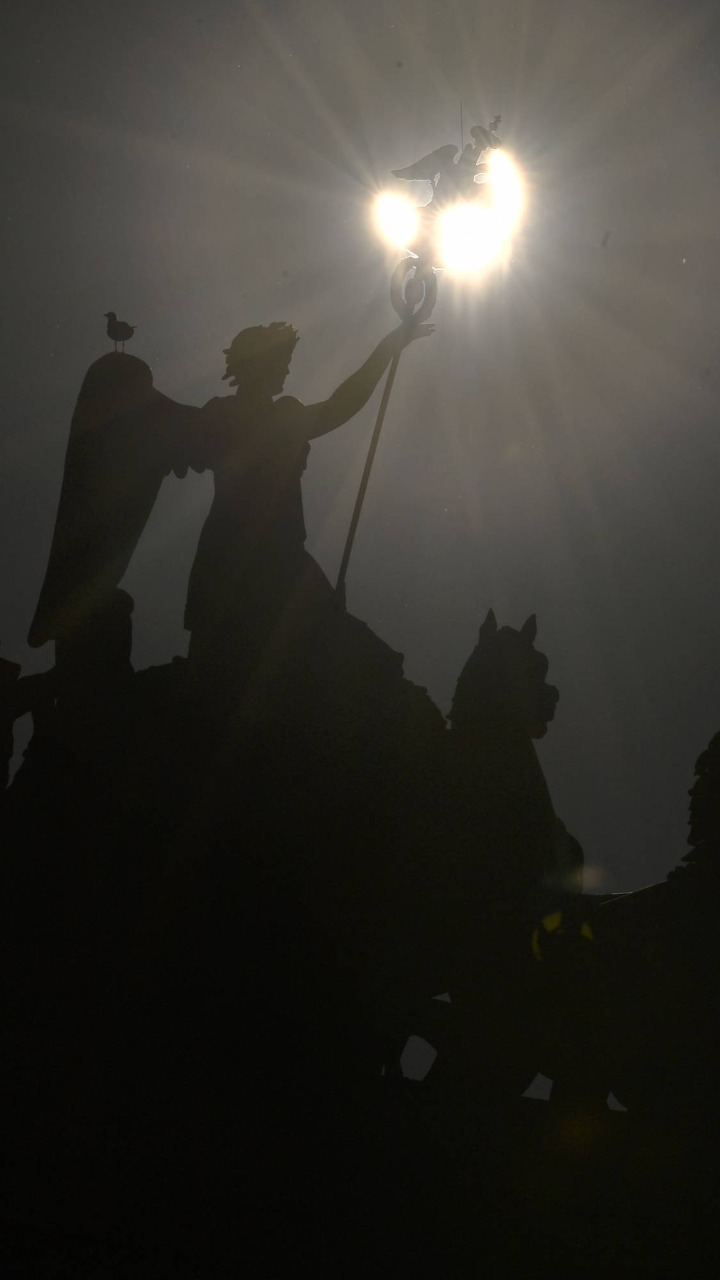 रोमानिया में सूर्य ग्रहण के दौरान देवी मिनर्वा की मूर्ति।