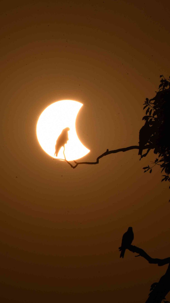 देश की राजधानी नई दिल्ली में आंशिक सूर्य ग्रहण के बीच कर्तव्य पथ पर पक्षी थिरकते हुए दिखाई दिए।