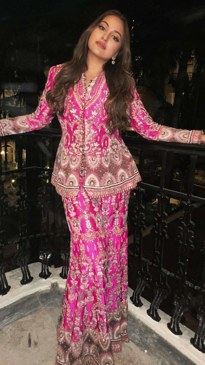 सोनाक्षी का टाई एंड डाई बॉसी अटायर बेहद स्टाइलिश लुक दे रहा है। आप उनके इस लुक से इंस्पिरेशन ले सकती हैं।