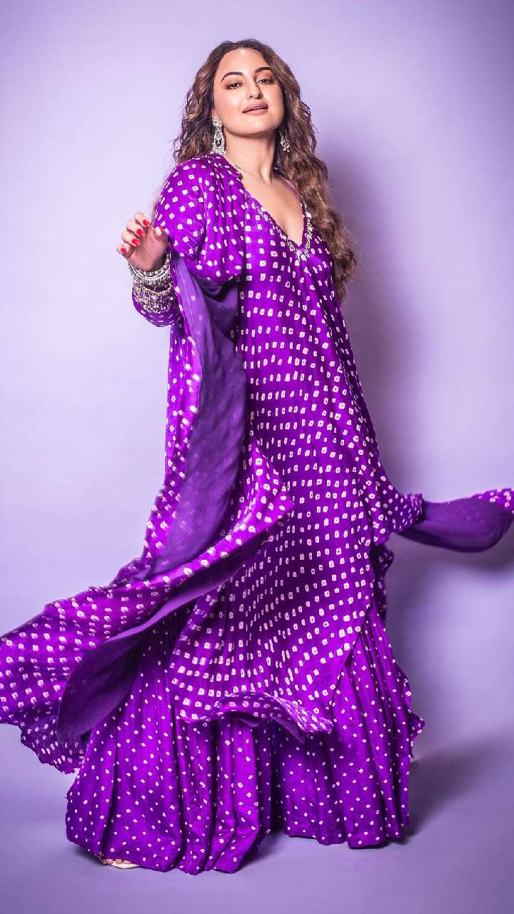 सोनाक्षी सिन्हा का यह काफ्तान स्टाइल चुनरी प्रिंट सूट कमाल का लुक दे रहा है। वहीं, ऑक्सीडाइज ईयररिंग्स उनकी खूबसूरती पर चार चांद लगा रहे हैं। आप भी कुछ ऐस लुक्स ट्राई कर सकती हैं।