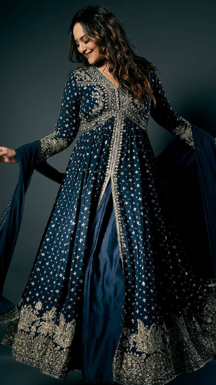 अगर आप शॉर्ट ड्रेस नहीं पहनना चाहती हैं, तो एक्ट्रेस के इस लॉन्ग फ्रॉक सूट से आइडिया ले सकती हैं। उन्होंने इसमें ब्लू कलर का लॉन्ग कट फ्रॉक सूट कैरी किया हुआ है।