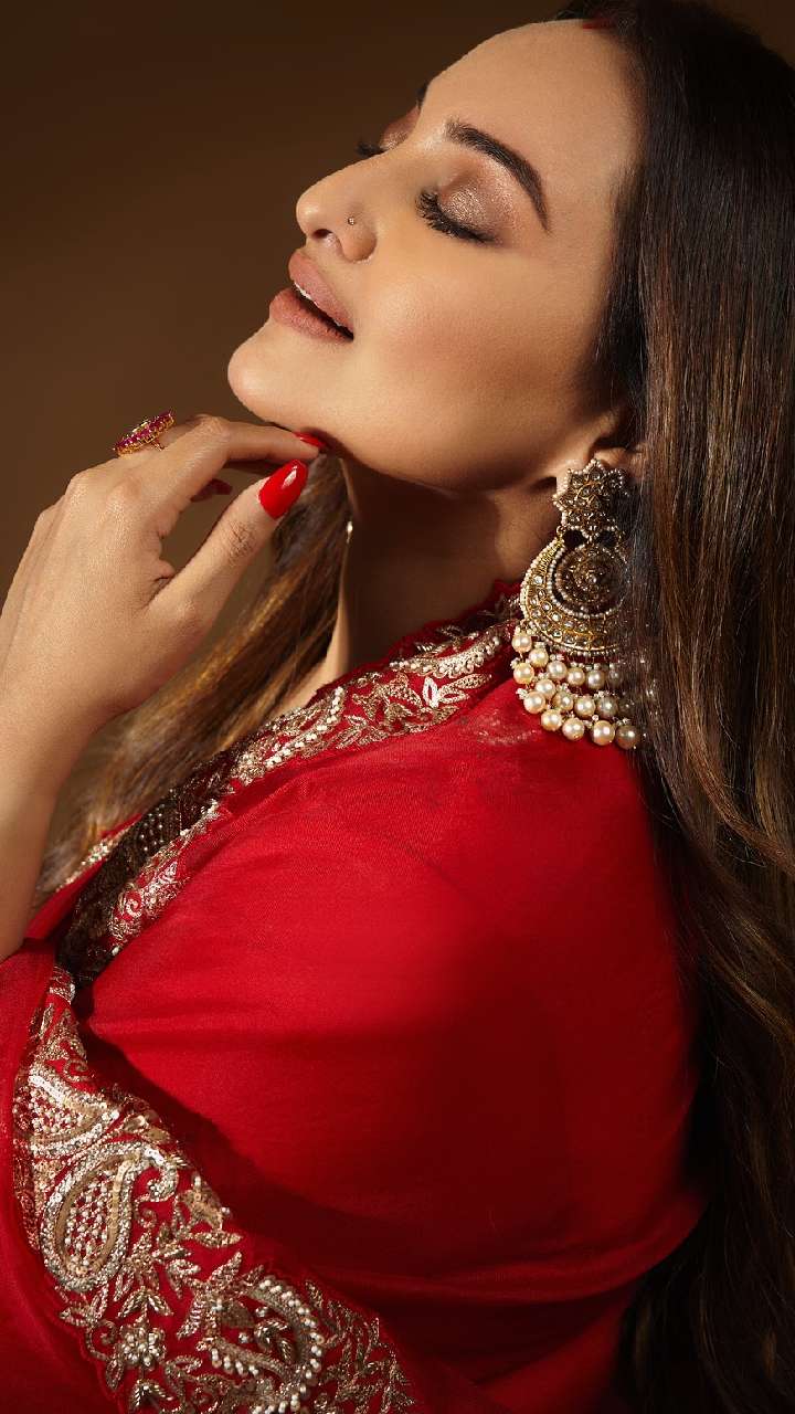 Sonakshi के ये इयररिंग्स देखने में प्यारे और खूबसूरत लग रहे है। आप सिंपल डिसेंट साड़ी या सूट के साथ इन स्टेटमेंट इयररिंग्स को कैरी कर सकती हैं।