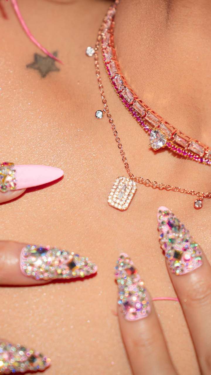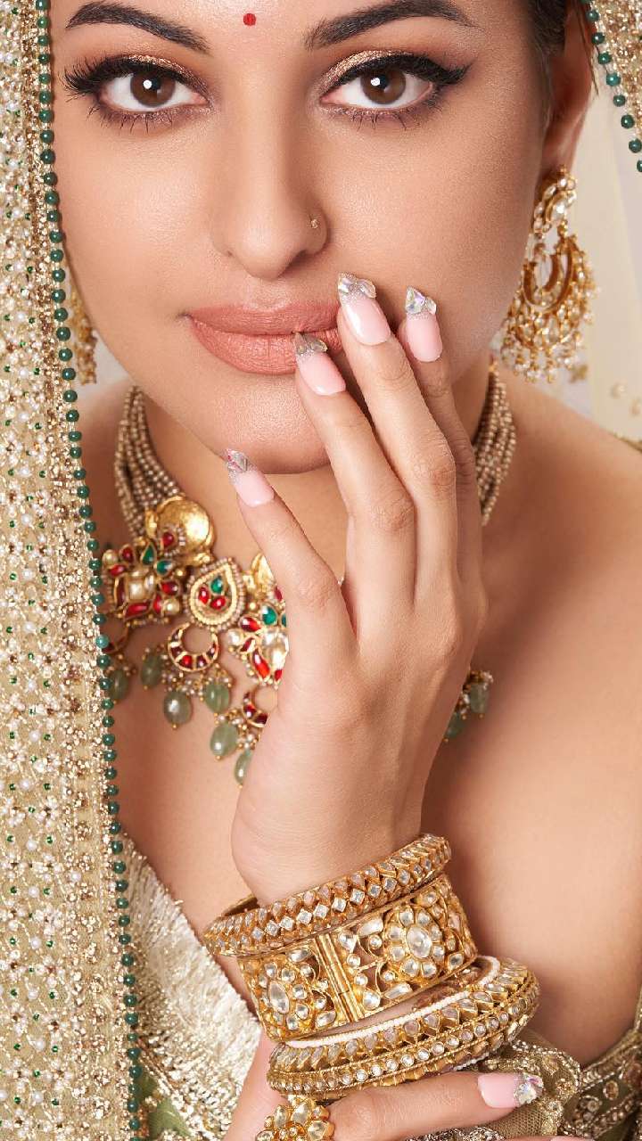 हाल में सोनाक्षी ने पिंक शेड के साथ स्टोन वर्क नेल आर्ट डिजाइन लुक शेयर किया है। जो कि आप भी अपने साड़ी या लहंगे के कलर से मैच करते हुए करा सकती हैं।