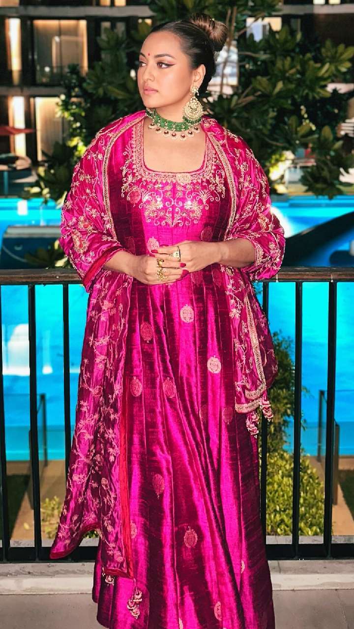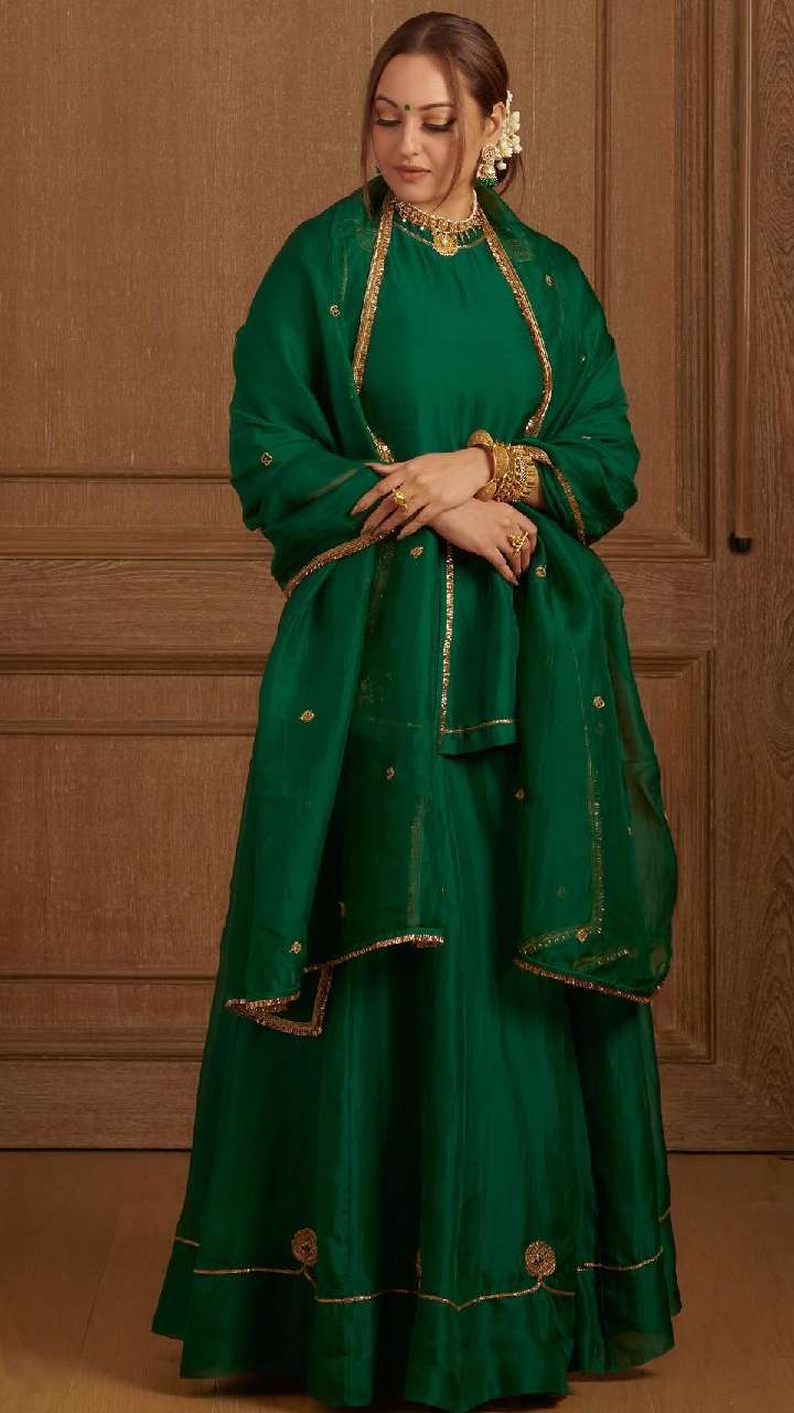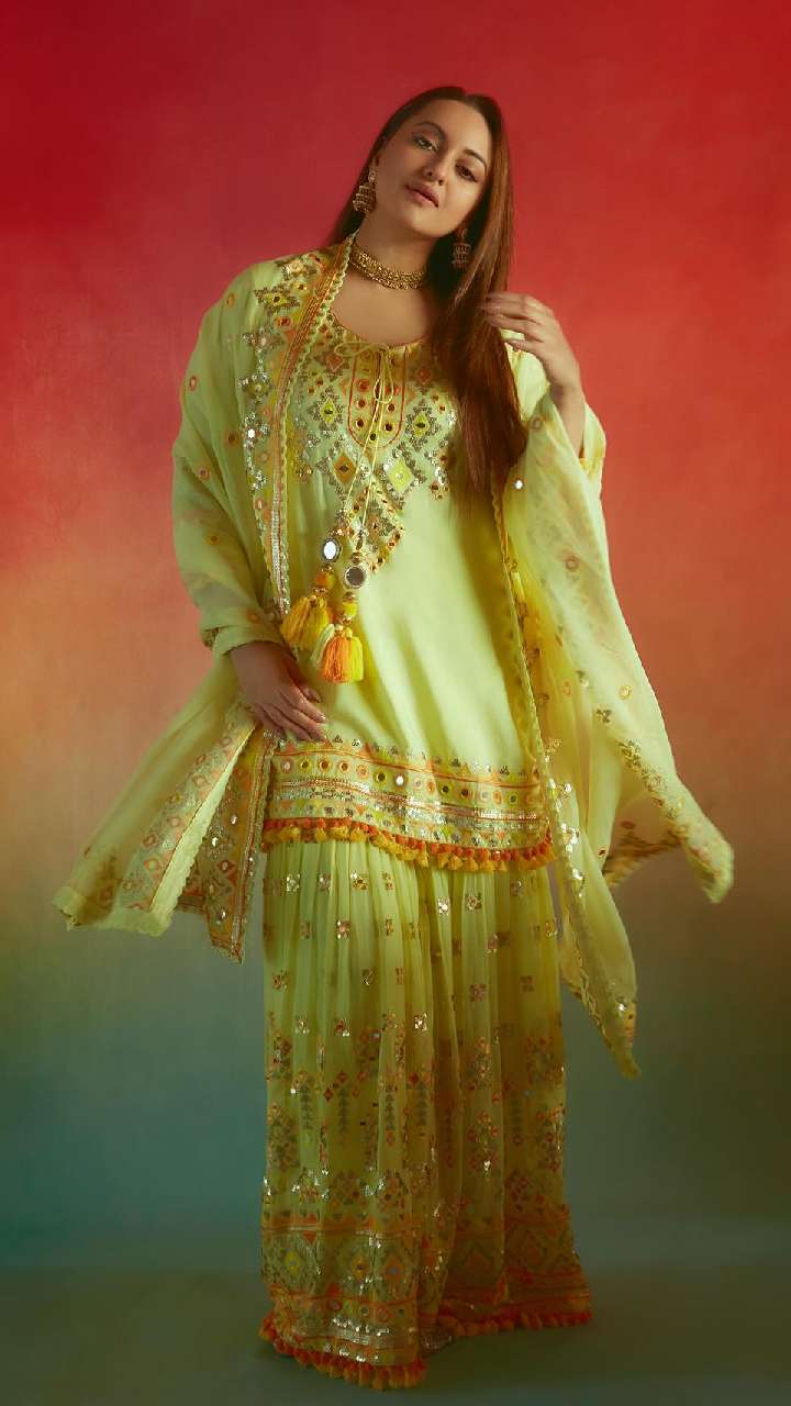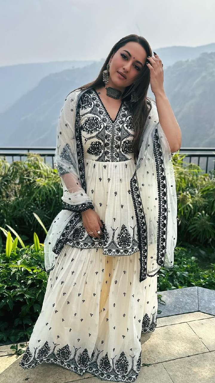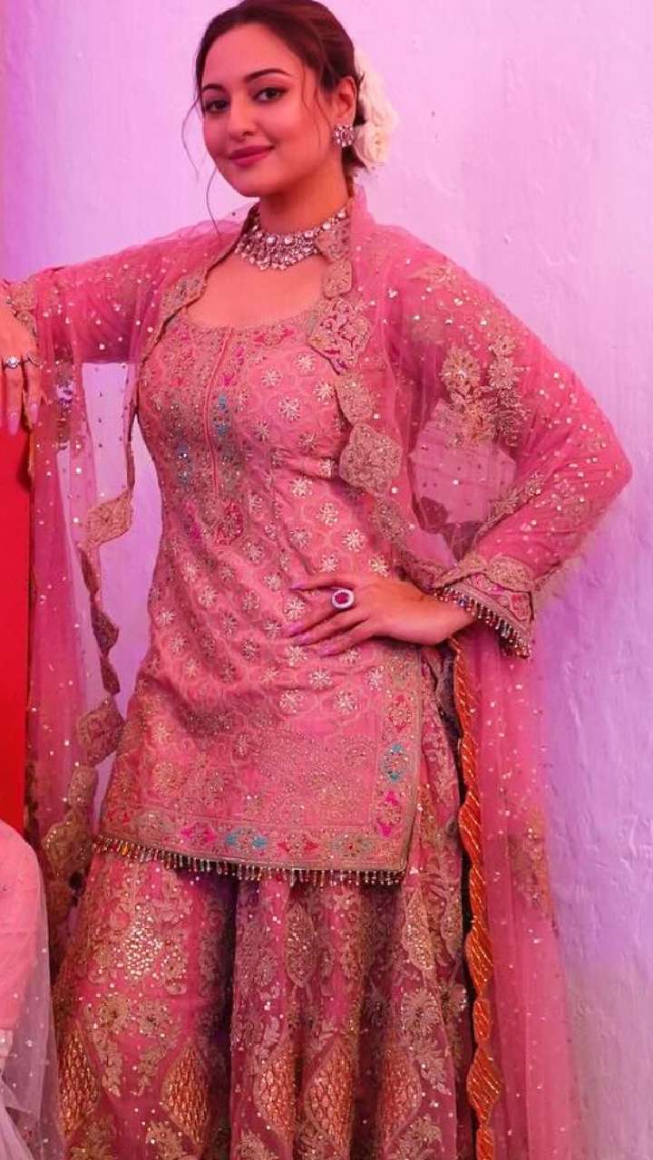 ईद पर आपको यदि चांद का टुकड़ा दिखना है तो सोनाक्षी के इस हैवी वर्क शरारा सूट से खुद को स्टाइल कर सकती हैं।