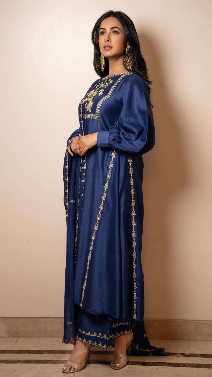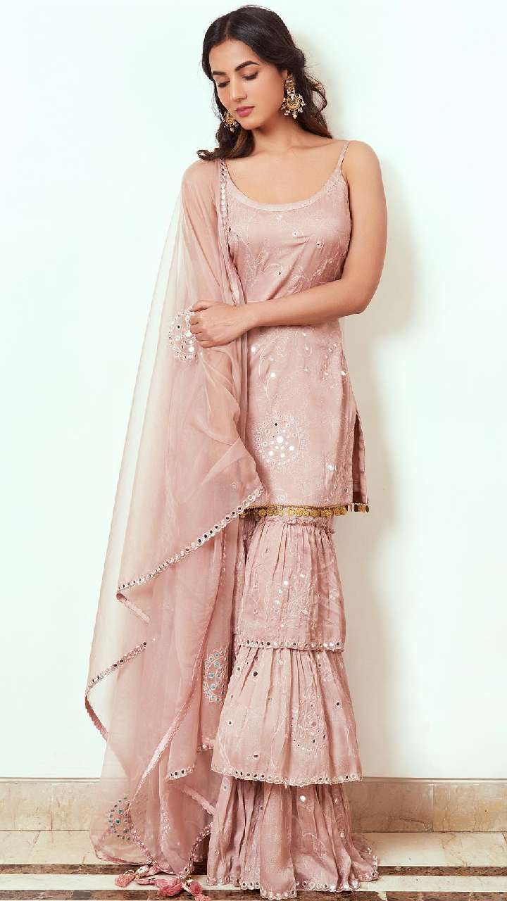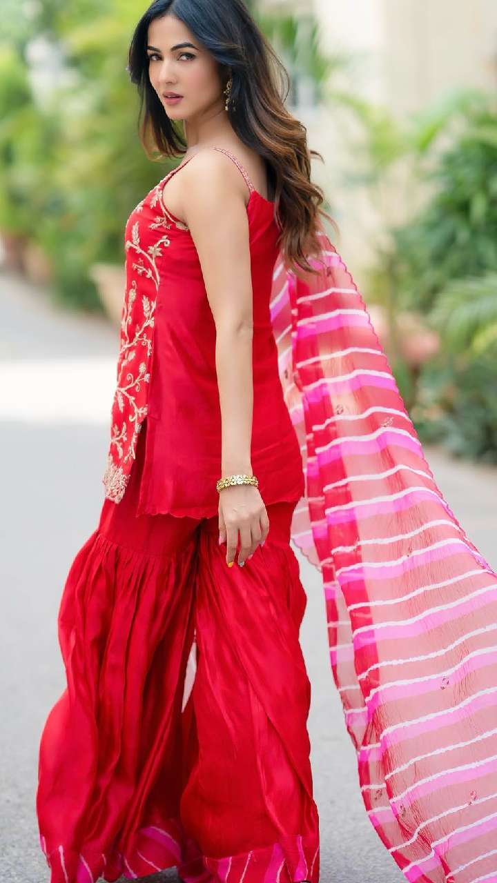 अपने लुक को ट्रेंडी बनाने के लिए आप सोनल चौहान की तरह ही शरारा पैटर्न सूट को भी ऑफिस में पहन सकती हैं।