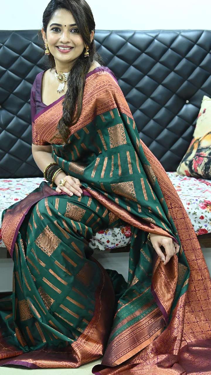 एक्ट्रेस की इस रॉयल साड़ी में हद से ज्यादा खूबसूरत लग रही है। इस तरह की साड़ियां नई-नवेली दुल्हन ससुराल में पहनकर सबको अपने जलवे से अट्रैक्ट कर सकती हैं।