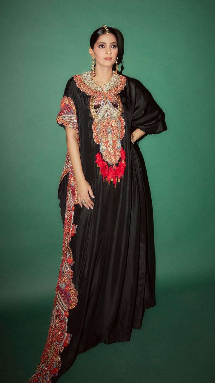 ब्लैक कलर के कफ्तान में सोनम कपूर का ये लुक काफी ज्यादा अतरंगी है। सोनम का ये लुक सोशल मीडिया पर बहुत वायरल हुआ था।