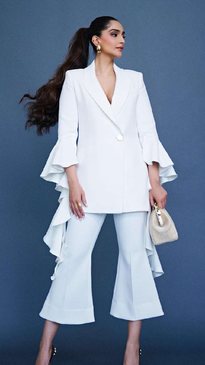 सोनम कपूर ने इस आउटफिट में एक व्हाइट कलर का क्लच बैग कैरी किया हुआ है। आप भी अपने ड्रेस के साथ ऐसे बैग को कैरी कर स्टाइलिश और क्लासी लुक पा सकती हैं।