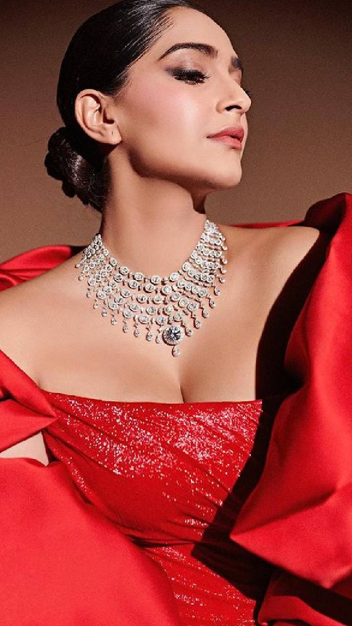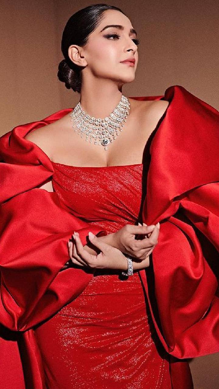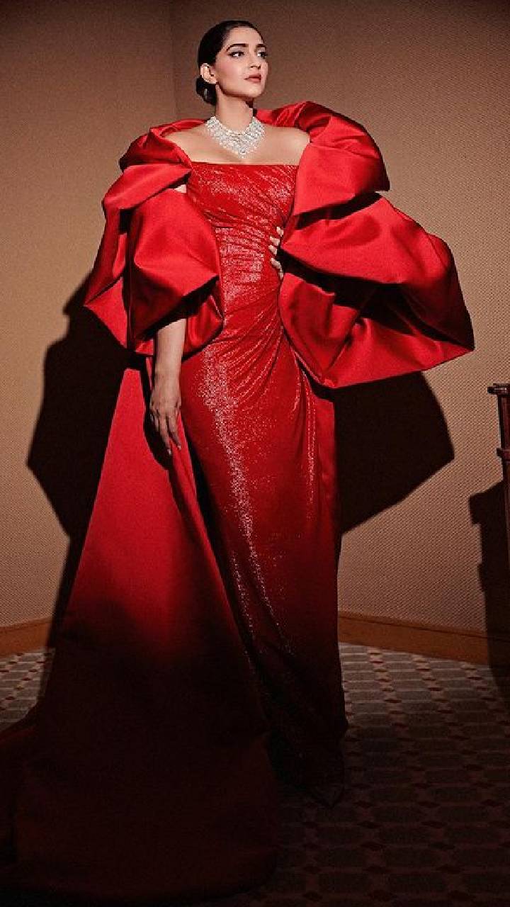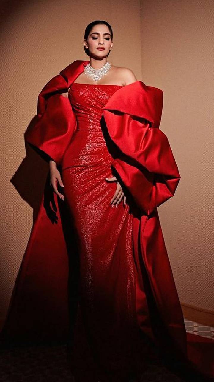 सोनम कपूर इस रेड हॉट गाउन में प्रिटी दिख रही हैं।