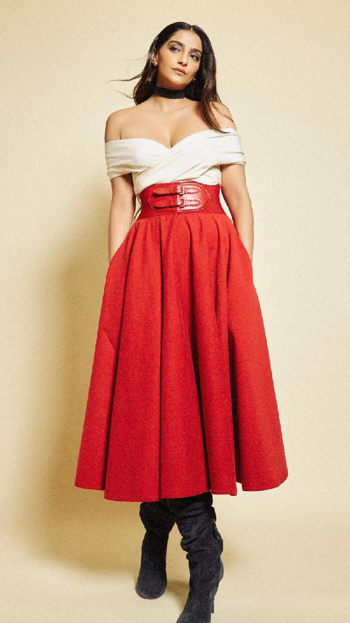 सोनम कपूर हाल में अपने लेटेस्ट वेस्टर्न लुक्स को लेकर काफी वायरल हो रही हैं। एक्ट्रेस का रेड एंड व्हाइट ड्रेस लुक काफी गॉर्जियस है।