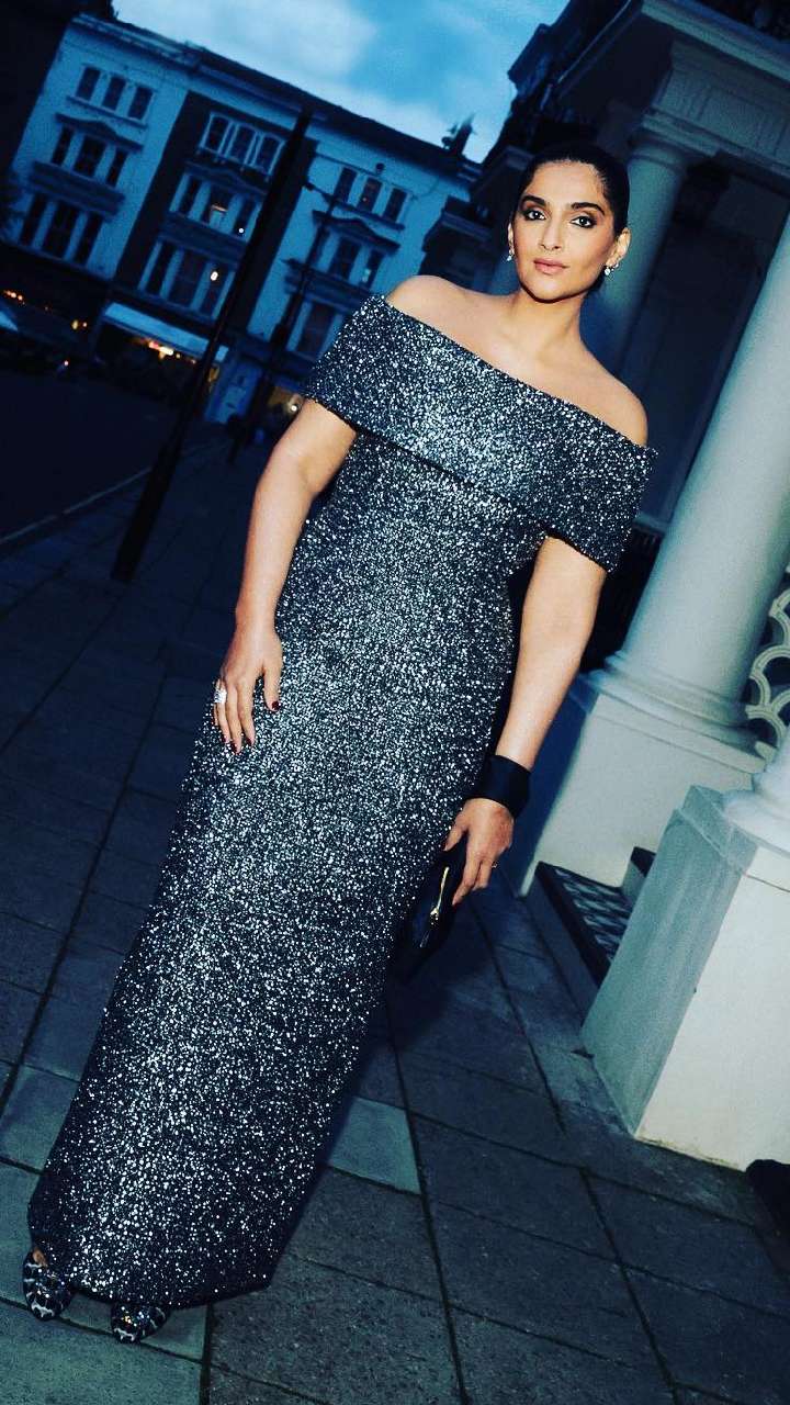 सोनम इस शिमरी बॉडीकॉन गाउन में एकदम पार्टी लुक दे रही हैं।