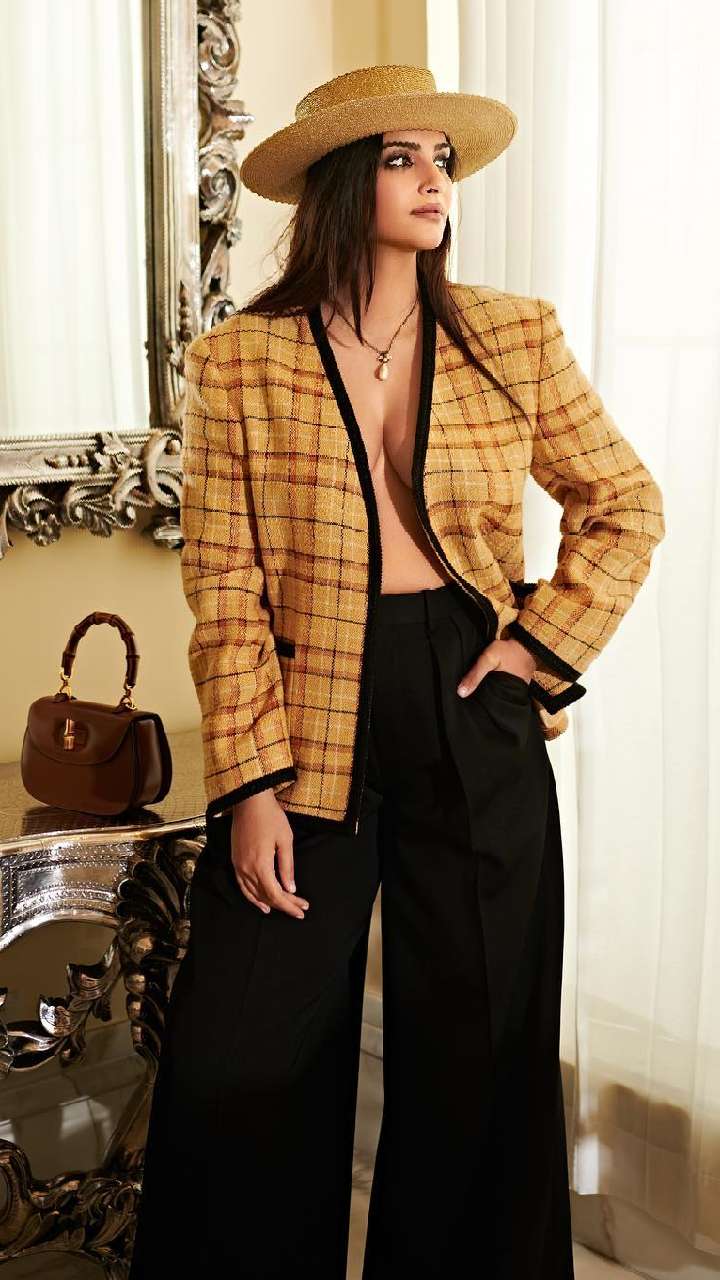 अभिनेत्री इस ब्लैक इन व्हाइट स्कर्ट टॉप विद ब्लेजर में काफी ग्लैमरस नजर आ रही हैं।