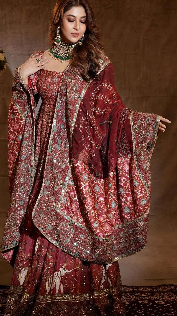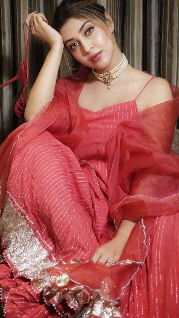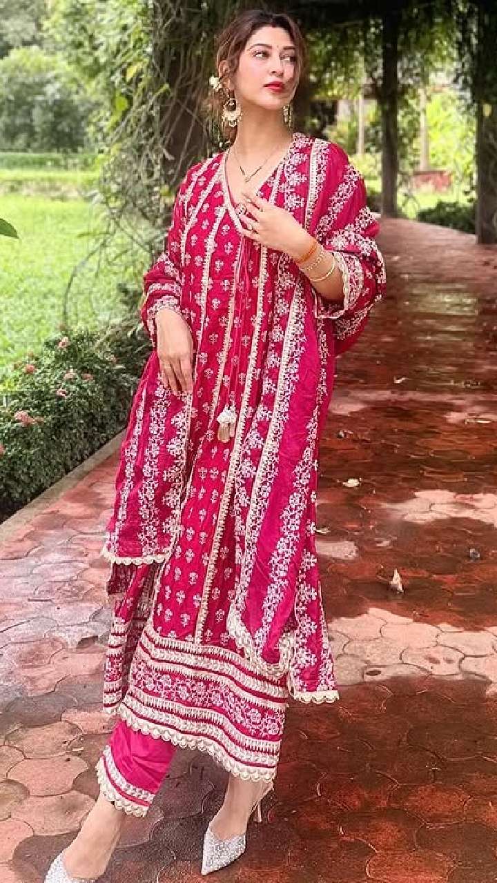 Sonarika Bhadoria का यह अनारकली सूट का लुक आपको ससुराल में रॉयल और क्लासी फील करवाएगां। इस सूट का बॉर्डर काफी सुंदर लग रहा है।