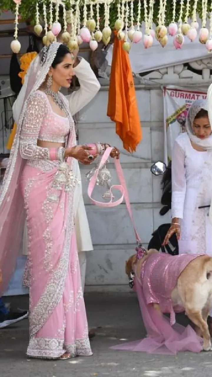 लाल जोड़े को छोड़ एक्ट्रेस ने पिंक कलर की ब्यूटीफुल आउटफिट कैरी किया था। कपल का आउटफिट बेहद खूबसूरत था।